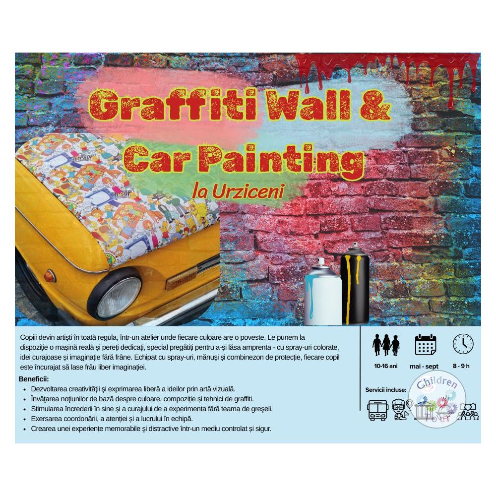 Experiență artistică pentru copii in Săptămâna Altfel - Wall Graffiti și Car Painting: creativitate, culoare și distracție, toate într-un cadru sigur.