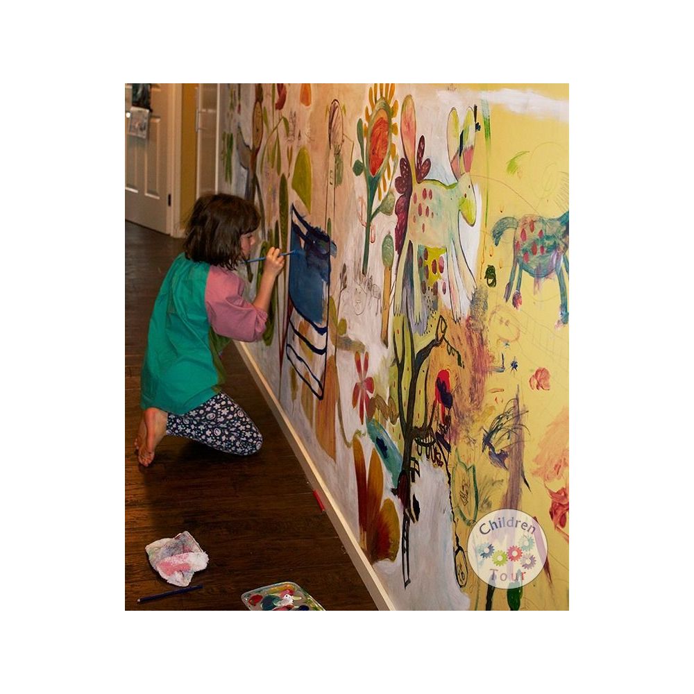 Echipat cu spray-uri, mănuşi şi combinezon de protecție, fiecare copil este încurajat să lase frâu liber imaginației.